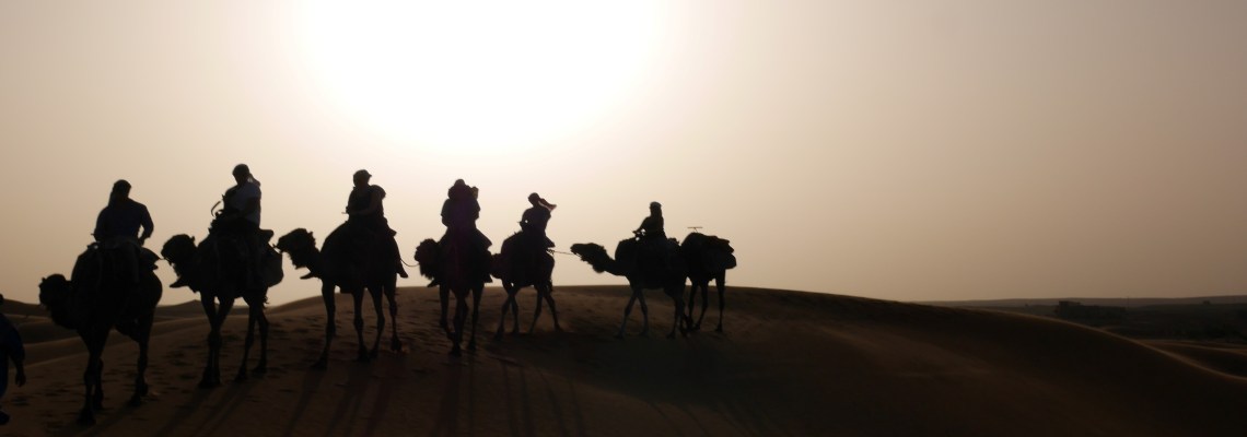 We set off on convoy and slowly civilisation was left behind until all that remained around us were dunes and a slow setting sun, casting a beautiful light and long camel shadows beside us.